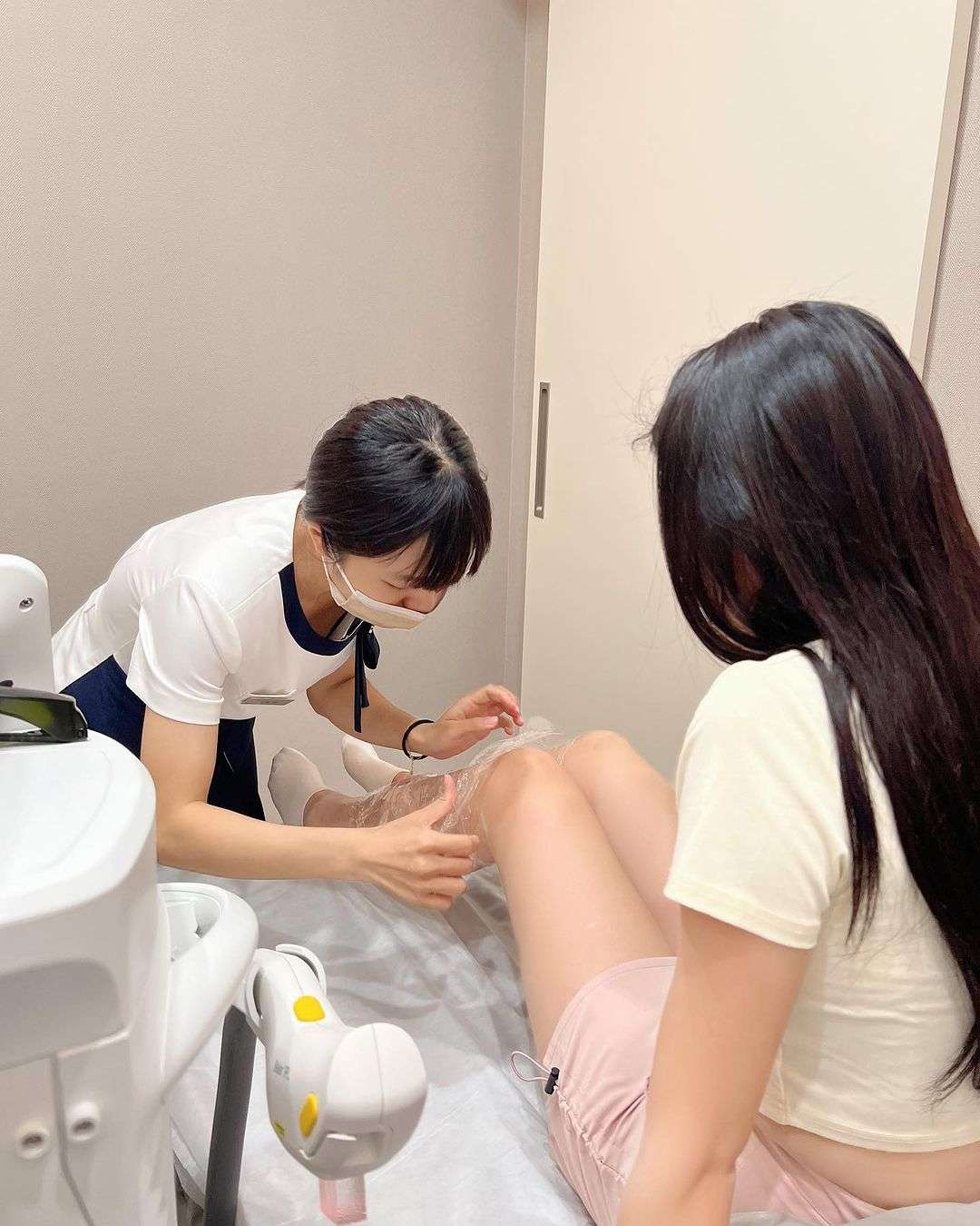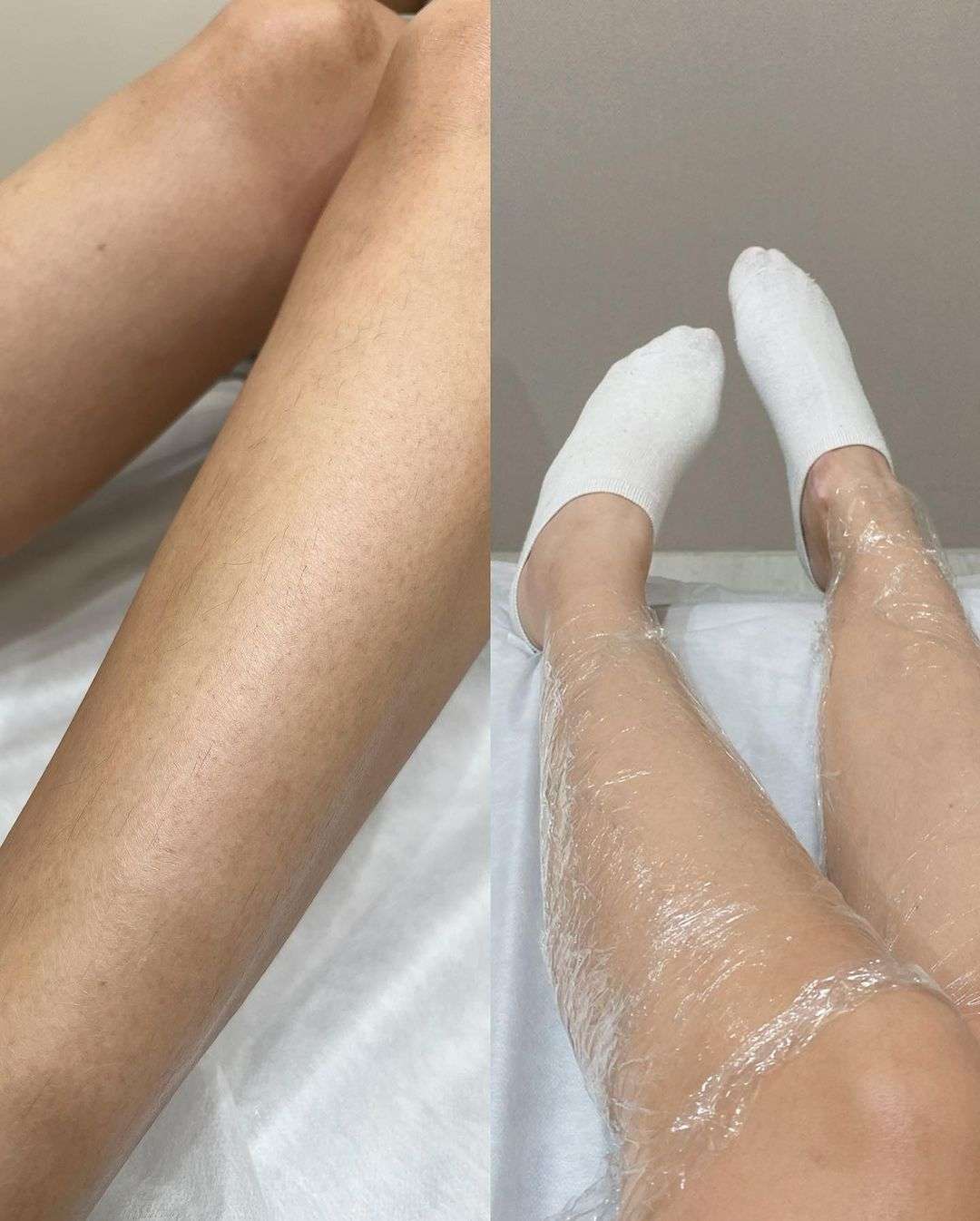 近看可以發現唐嫣的腿毛因為以前有自行刮除,結果長出來很不均勻,所以決定來用心動光除毛一勞永逸。