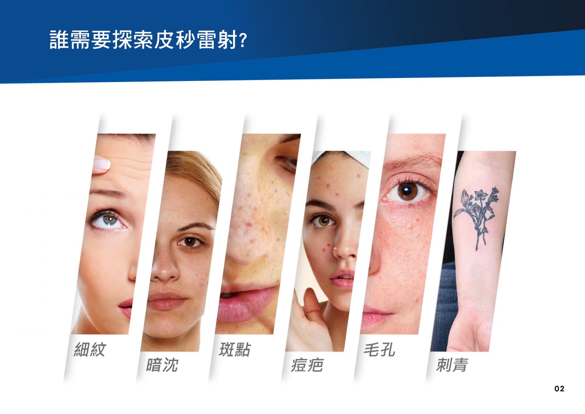 1.除斑:改善深層、淺層斑點、胎記、曬斑、膚色不均